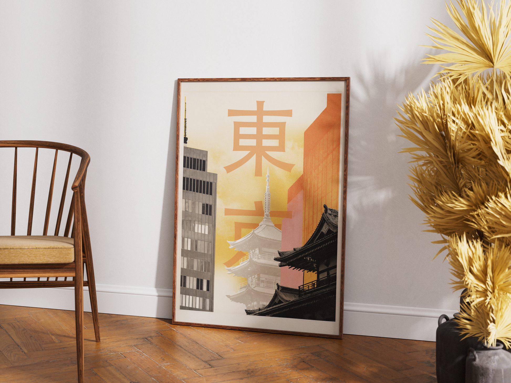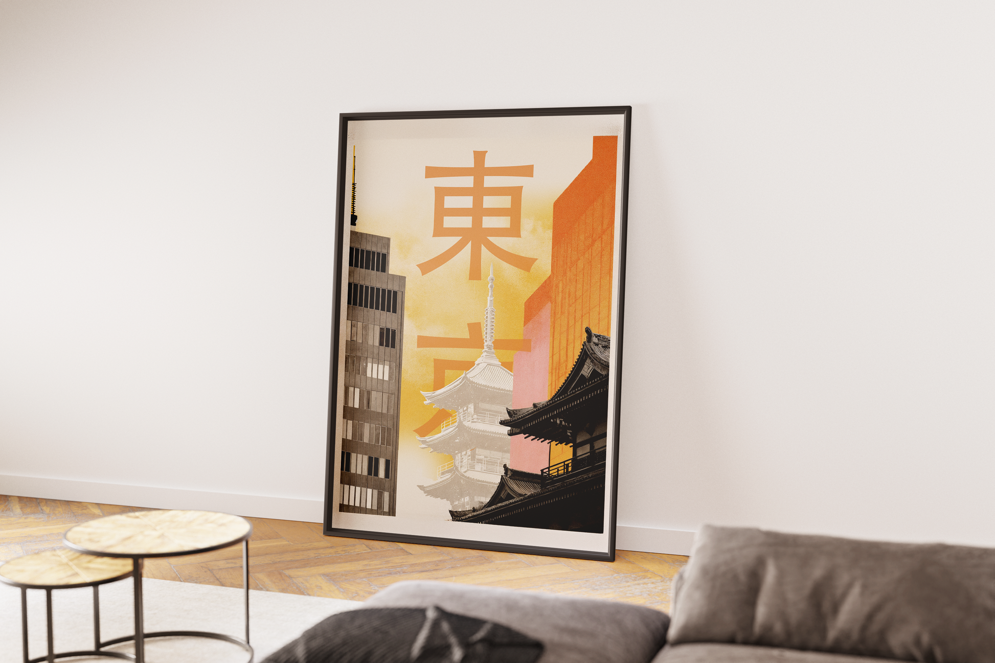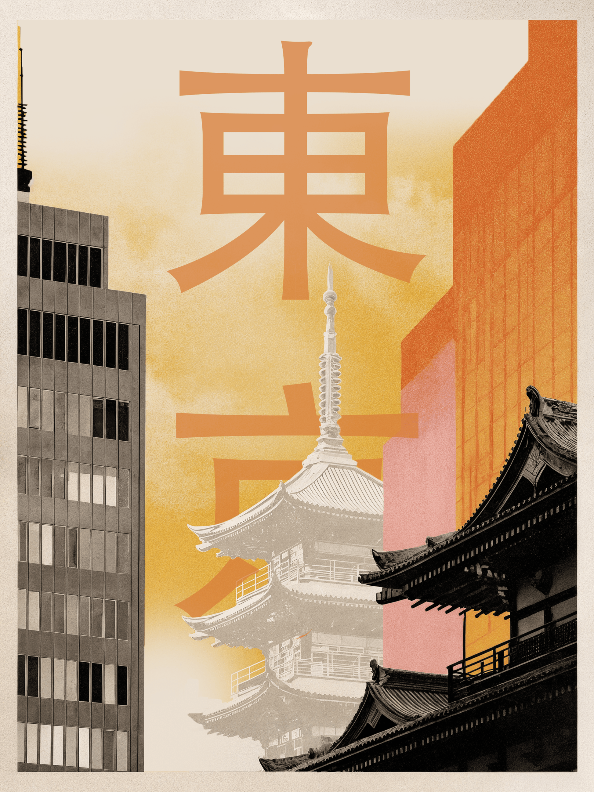 City Pulse I – Tokyo’s rising skyline and cultural symbols captured in a vibrant urban silhouette.