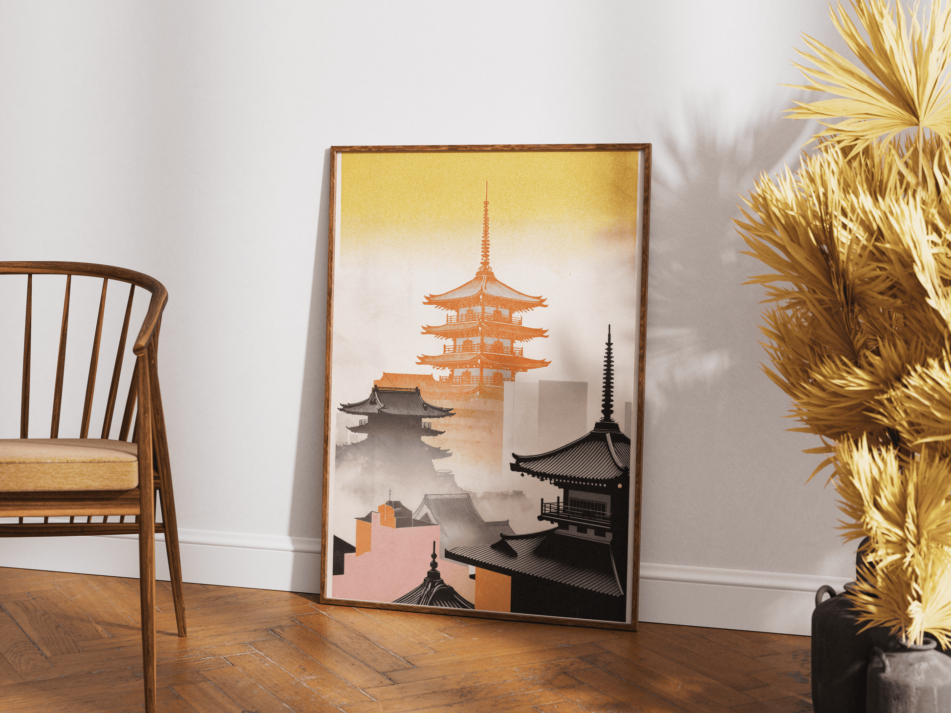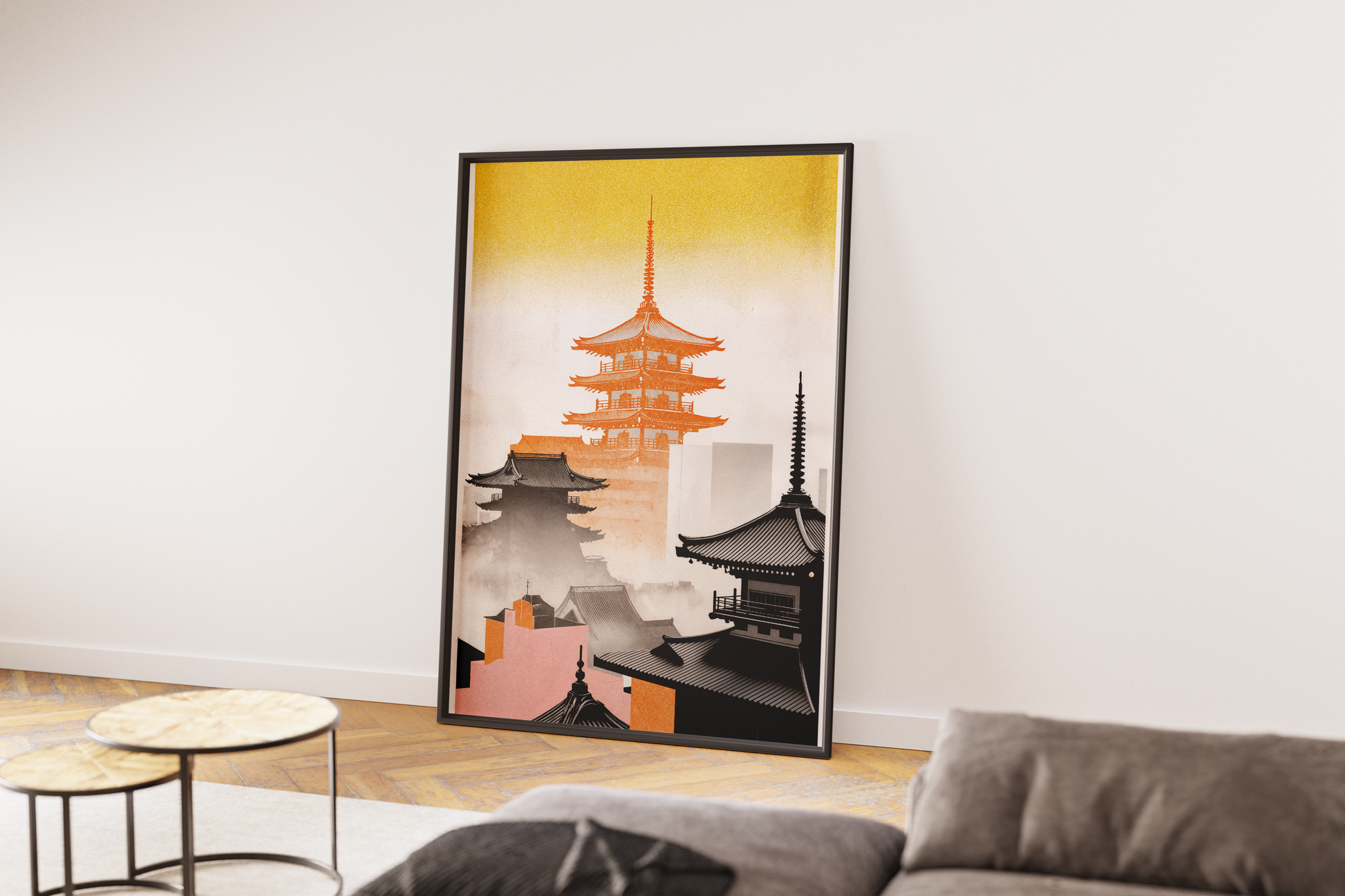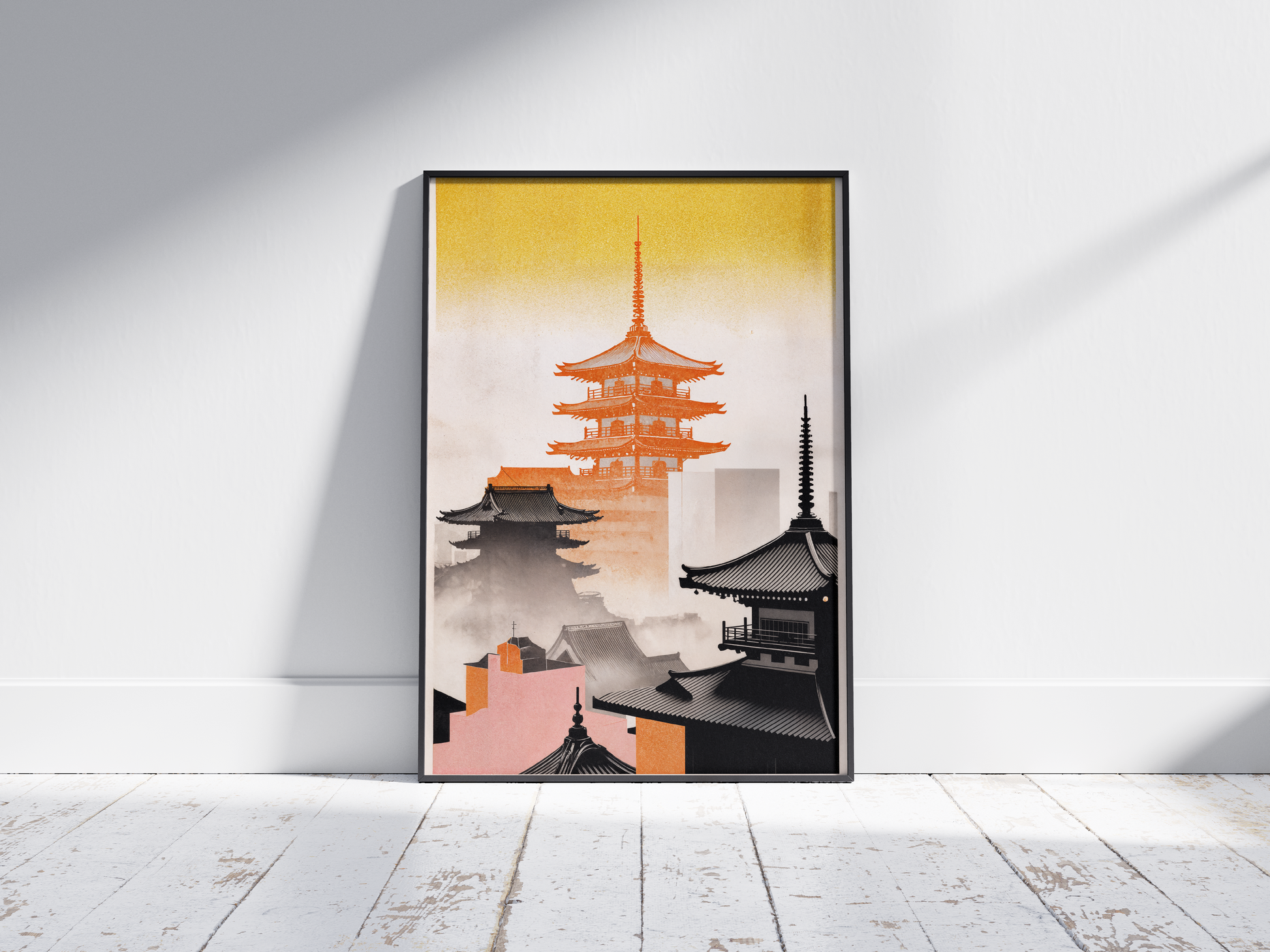 City Pulse I – Tokyo’s rising skyline and cultural symbols captured in a vibrant urban silhouette.
