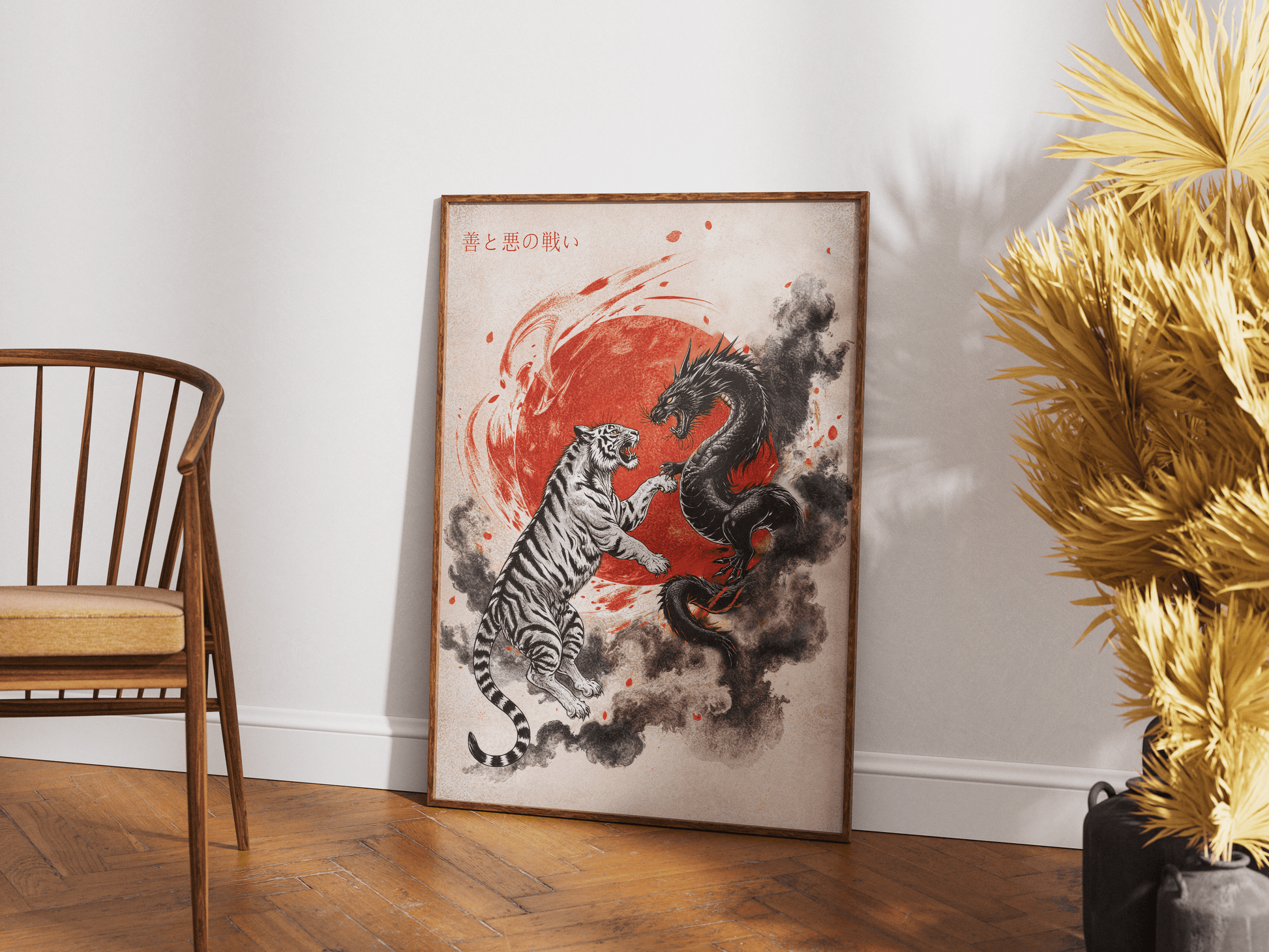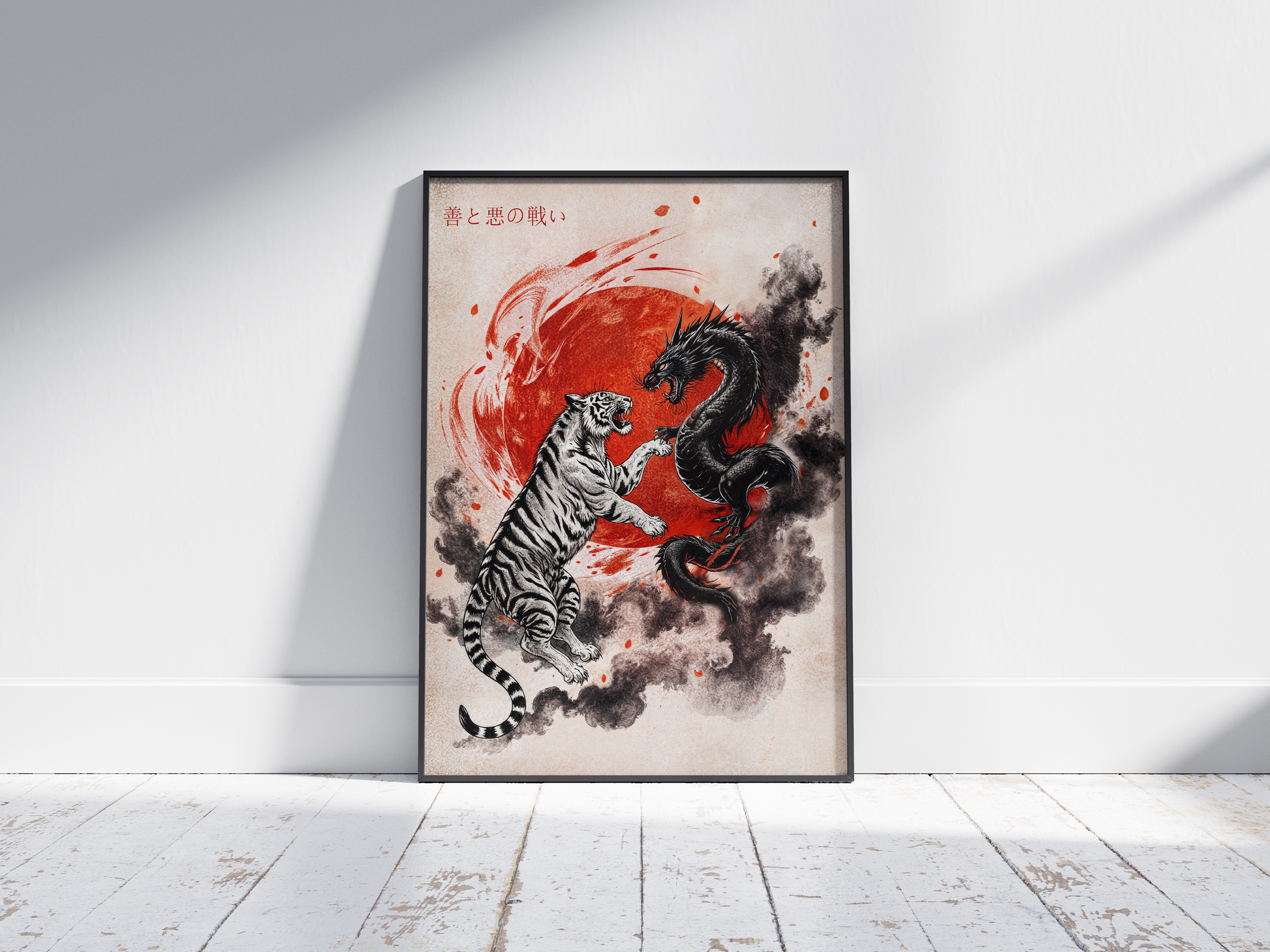Duality – A symbolic artwork inspired by Japanese legends, capturing the eternal clash within us.