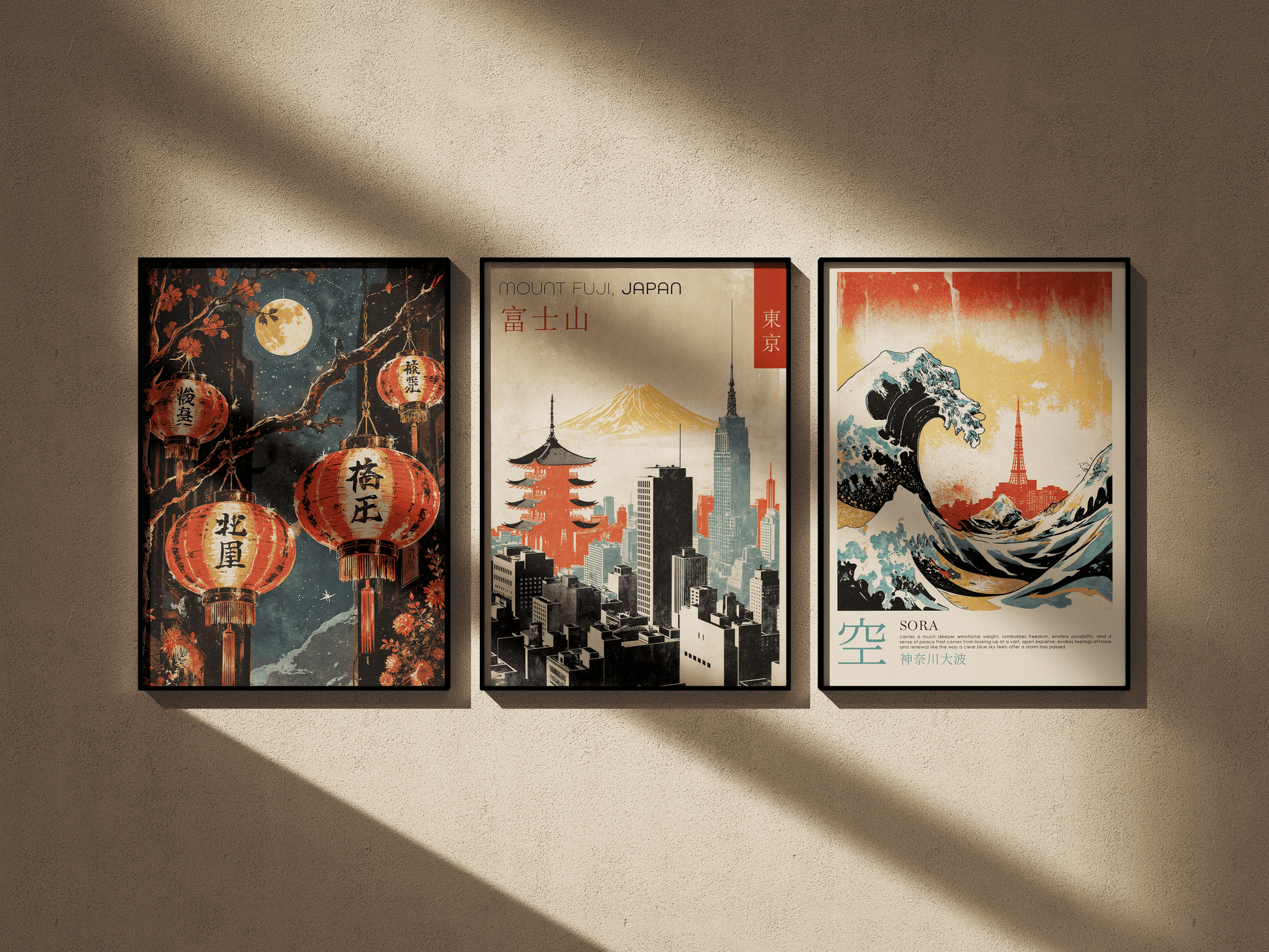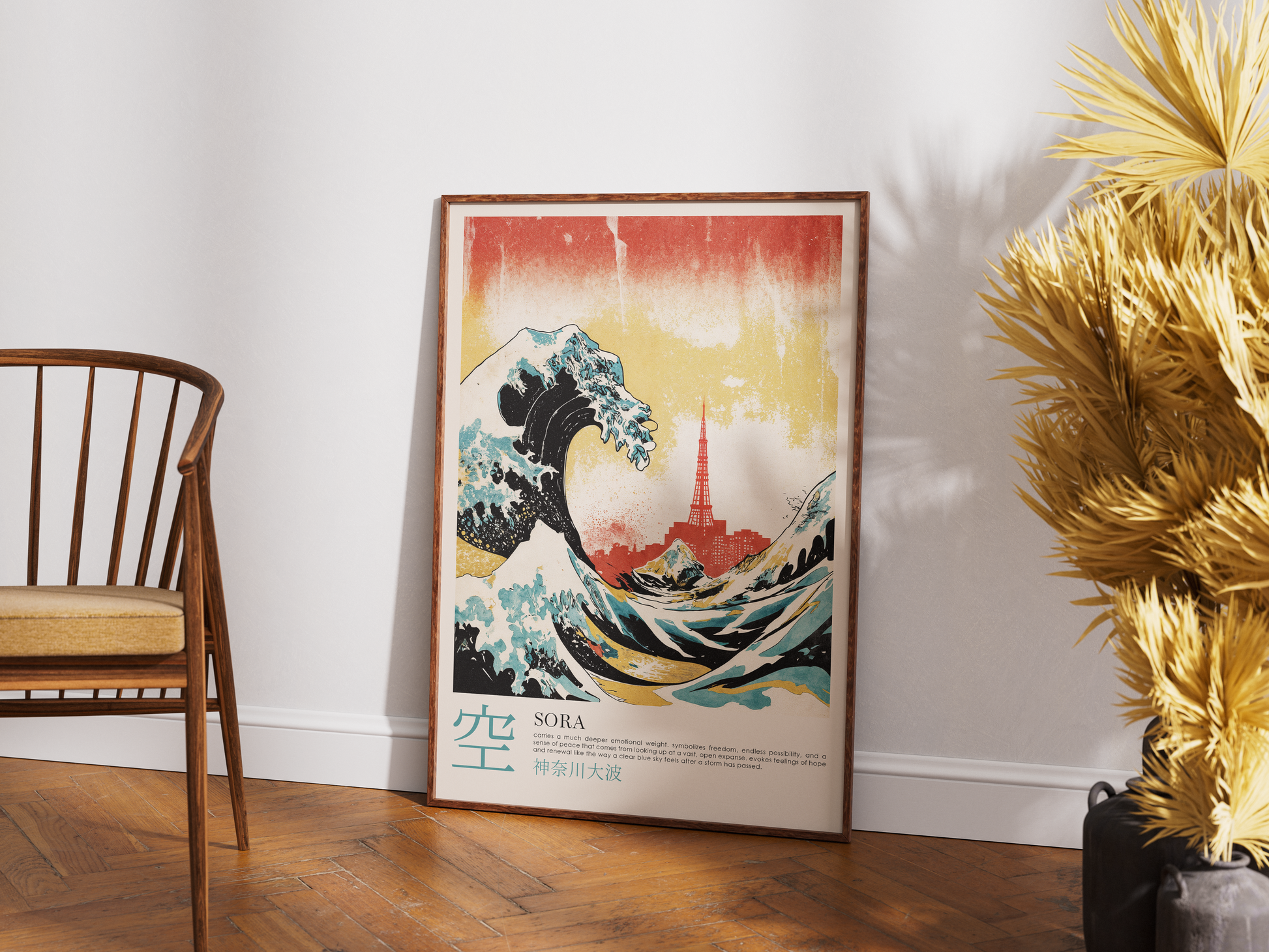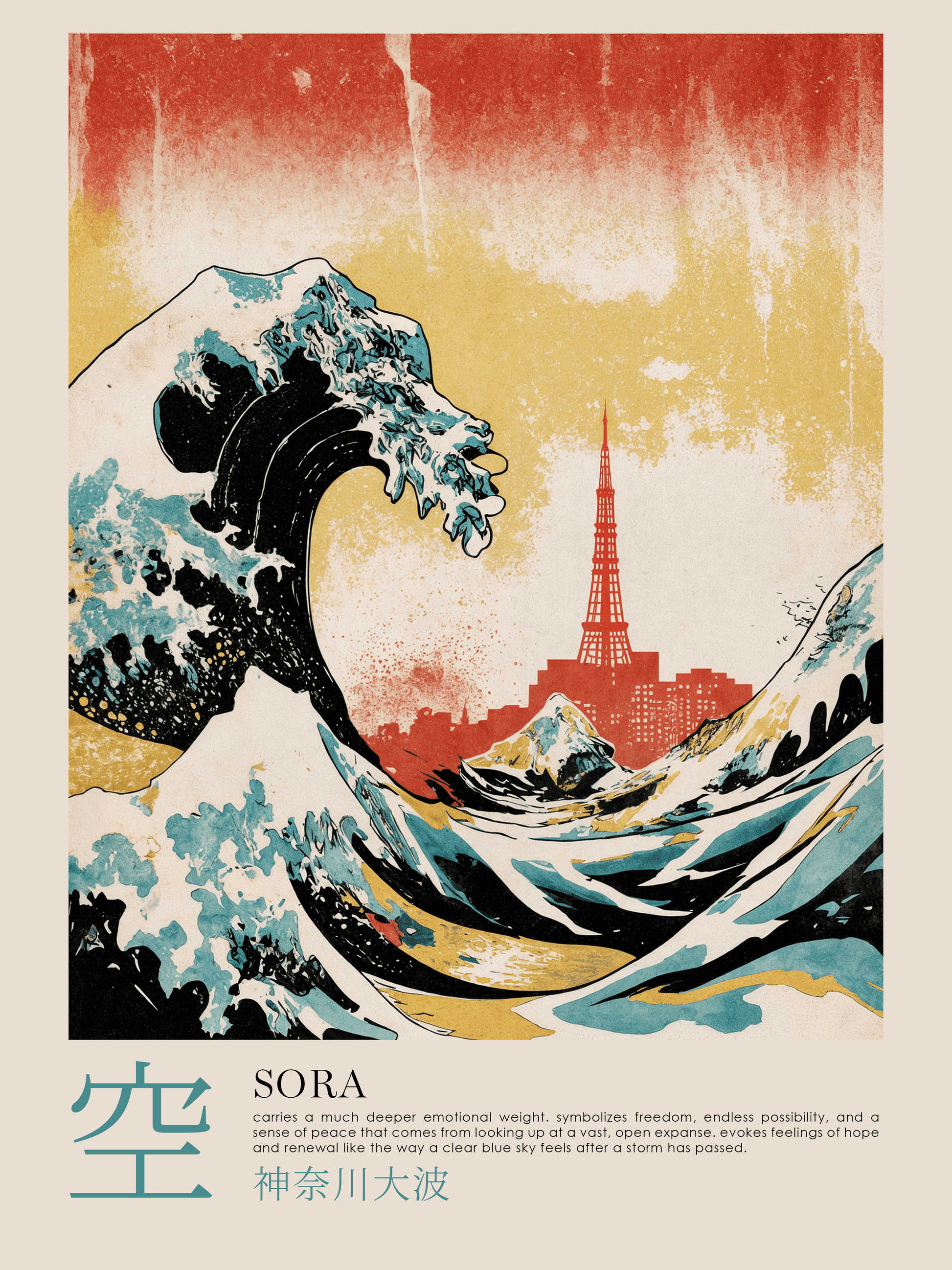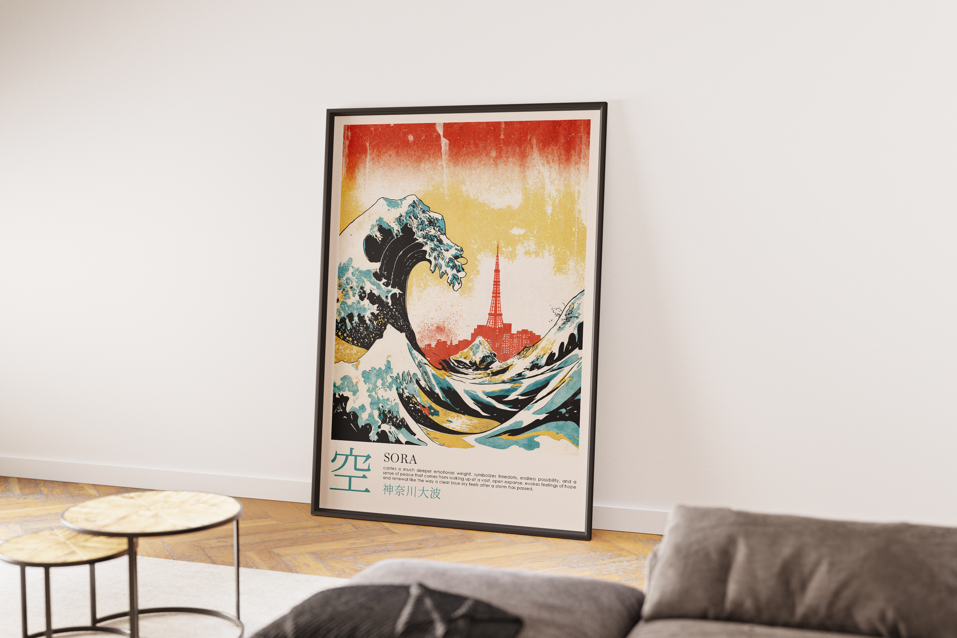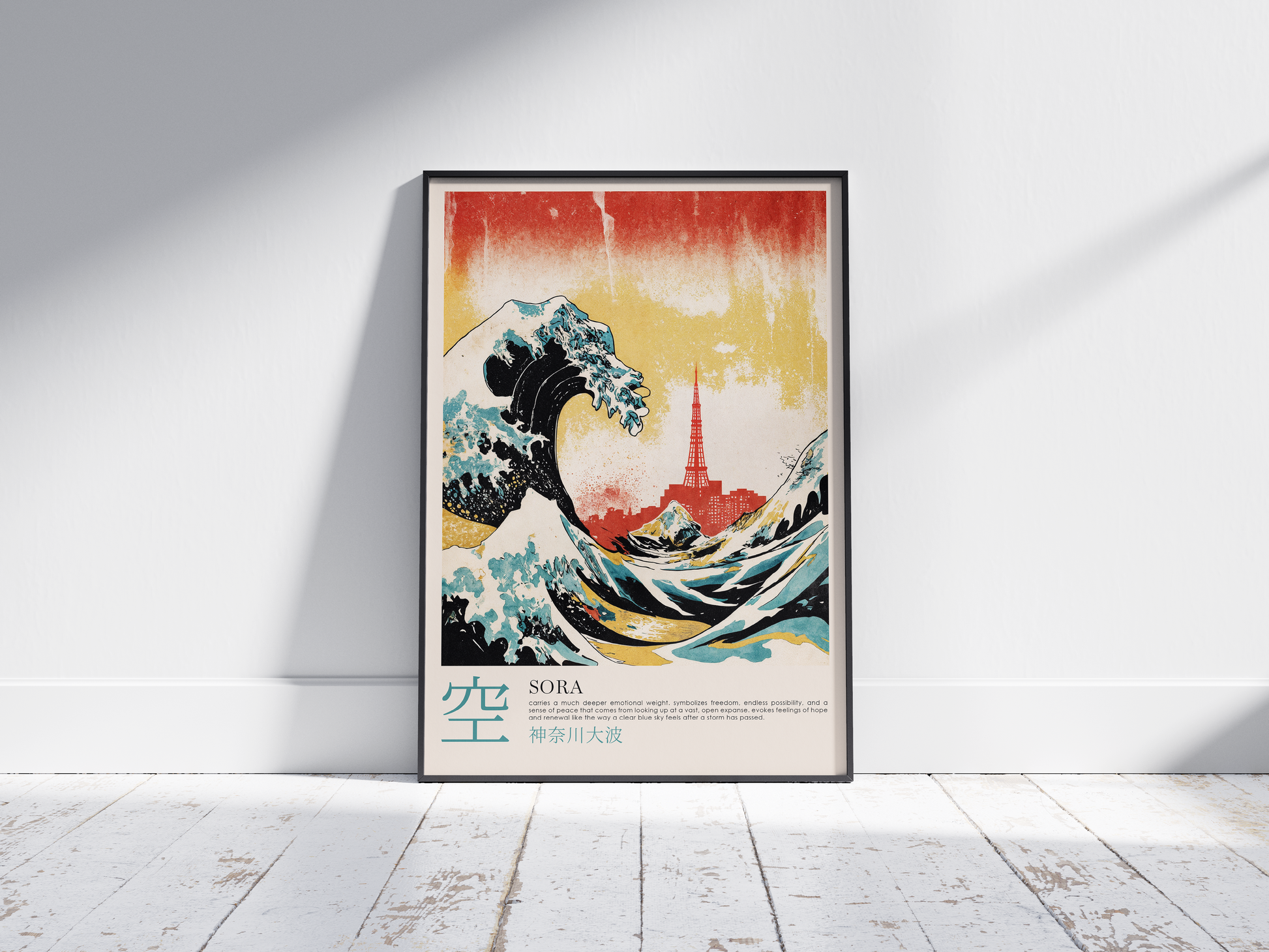 Endless Sky – The famous Kanagawa waves meet the infinite sky, symbolizing freedom in motion.
