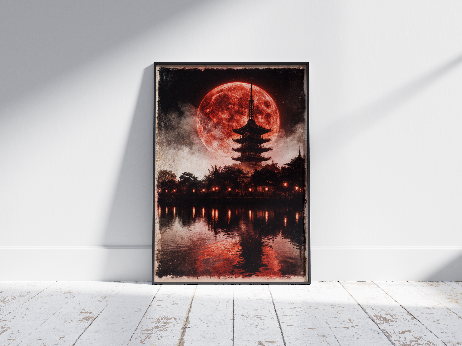 Fullmoon in the Darkness – A breathtaking eclipse scene where Tokyo’s temples and skyline glow mysteriously under the radiant moon.