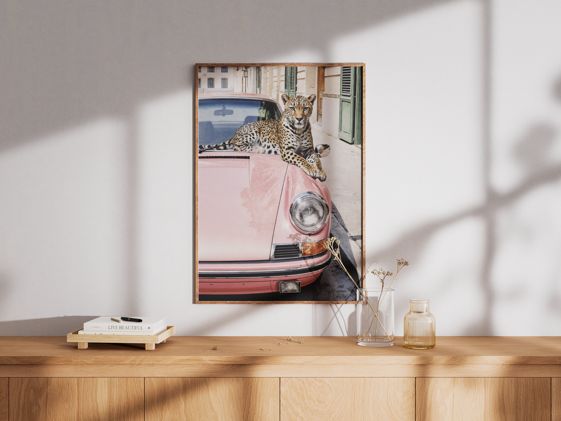 Leopard on the Porsche – A mysterious leopard roams the streets of Paris a top a Porsche, embodying a bold and rebellious spirit.