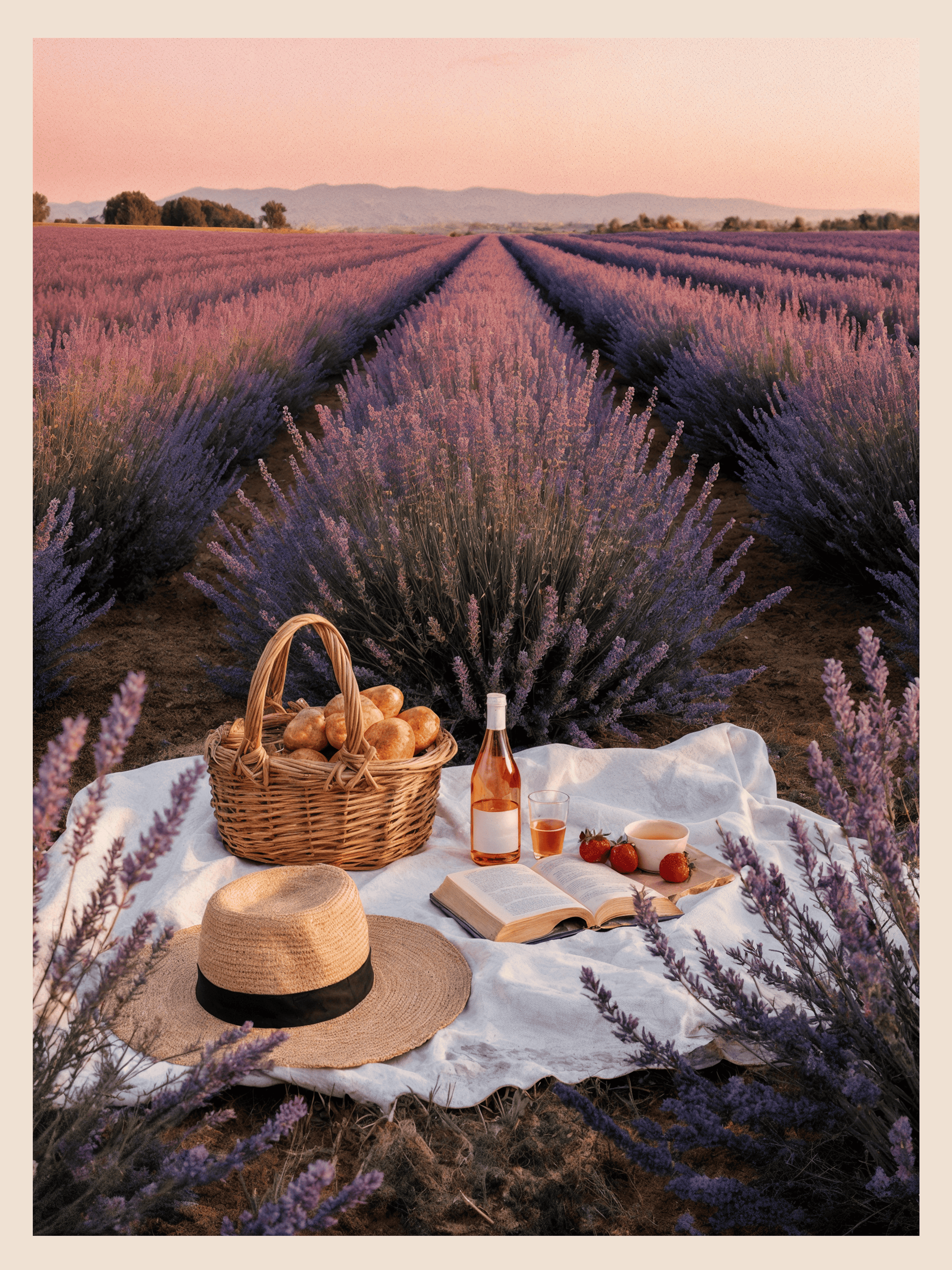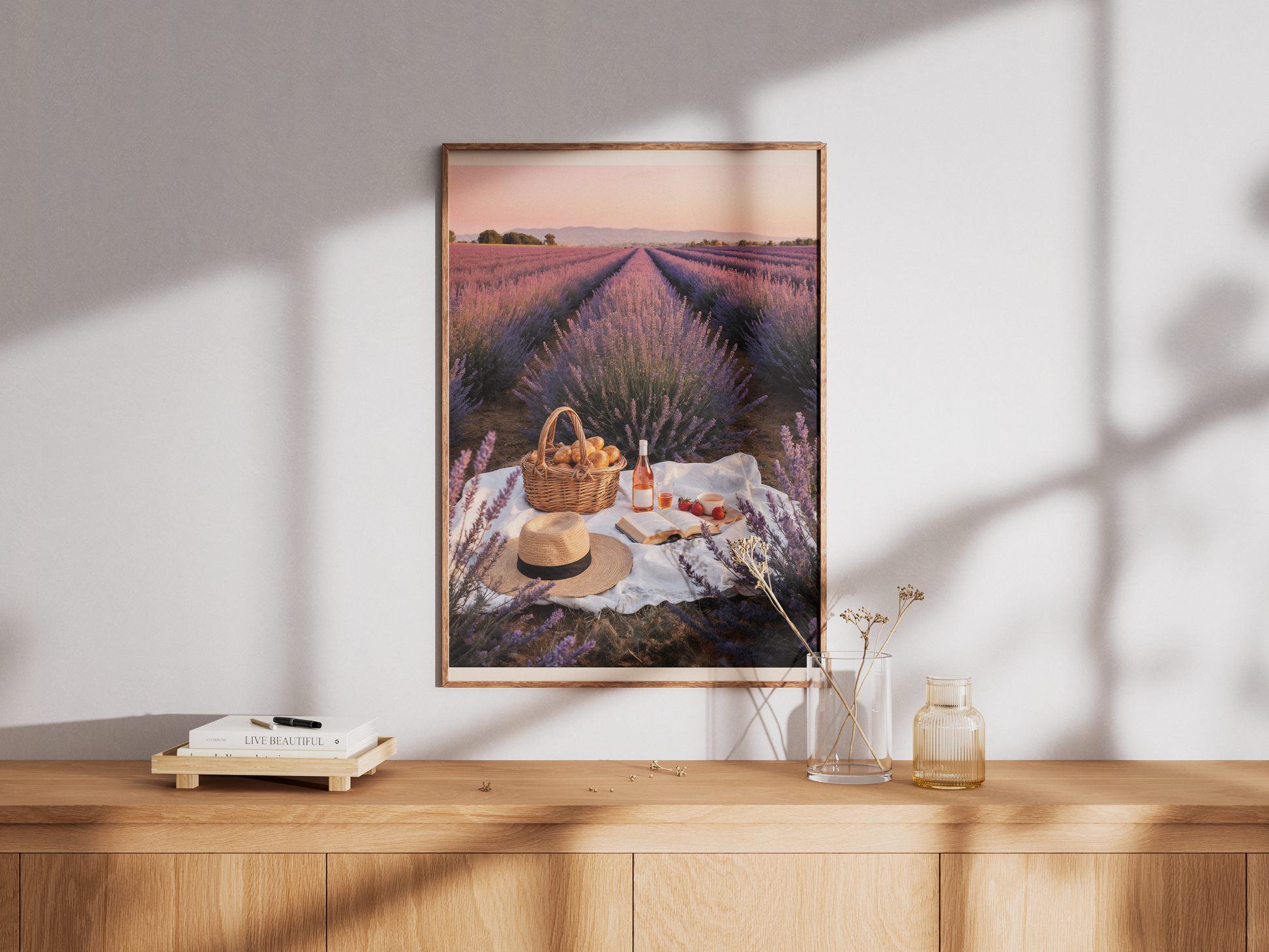 Picnic on the Lavenders – Lose yourself in the endless beauty of Paris’ lavender fields with this immersive, dreamy artwork.