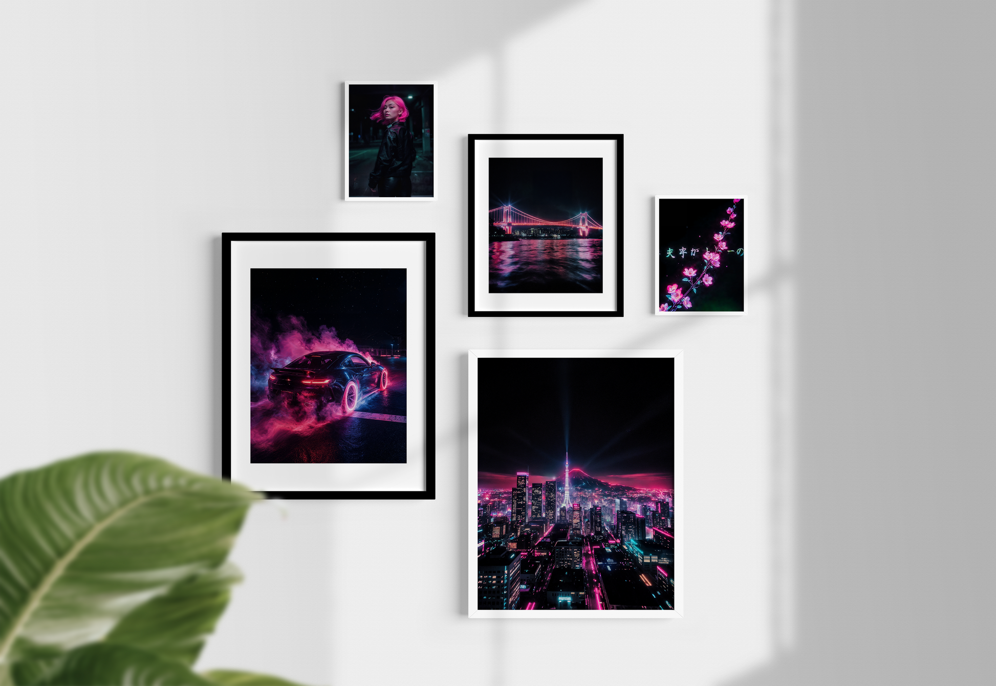 Tokyo Silhouette – A vibrant piece that brings Tokyo’s dazzling nights to life, where neon colors seem to move with the city’s rhythm.