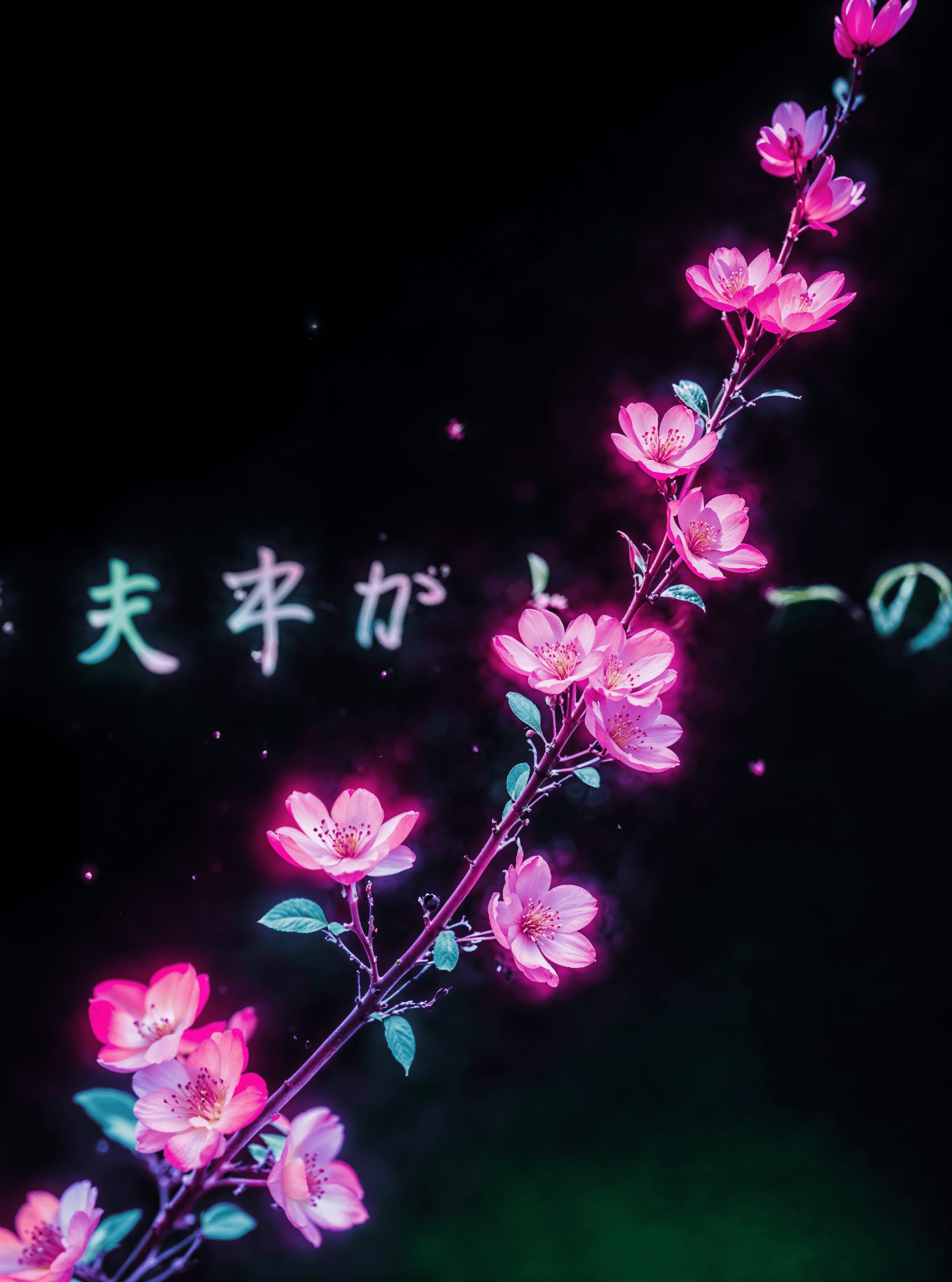 Sakura – Japan’s iconic cherry blossom reimagined in vivid neon hues, blending beauty and brilliance in a striking display.