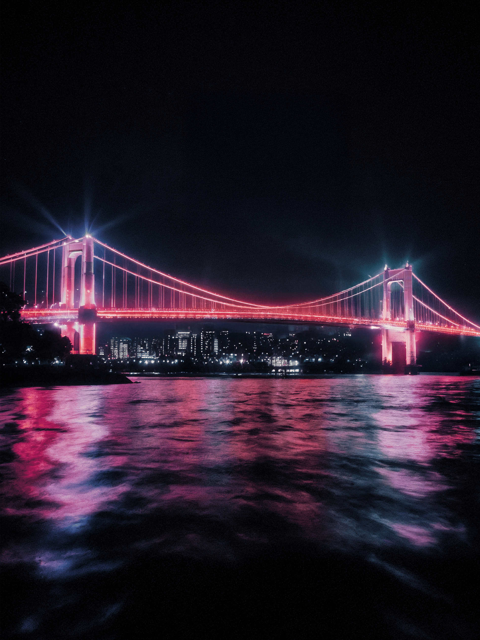 Tokyo Rainbow Bridge – The iconic bridge illuminated in neon lights, standing out as a true symbol of Tokyo’s glowing skyline.