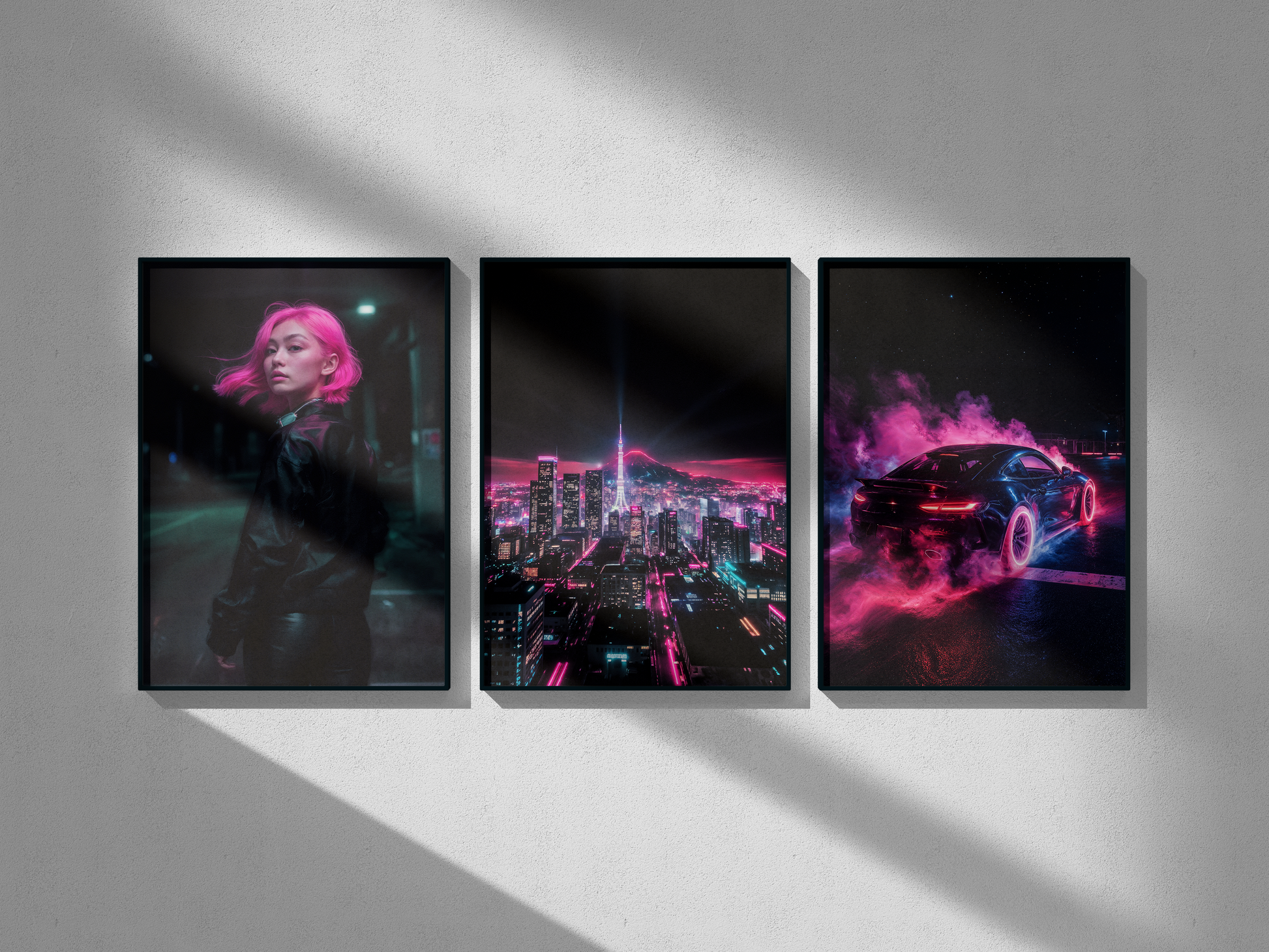 Tokyo Silhouette – A vibrant piece that brings Tokyo’s dazzling nights to life, where neon colors seem to move with the city’s rhythm.